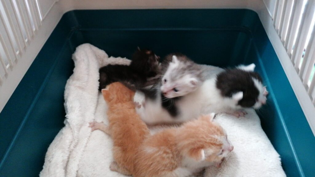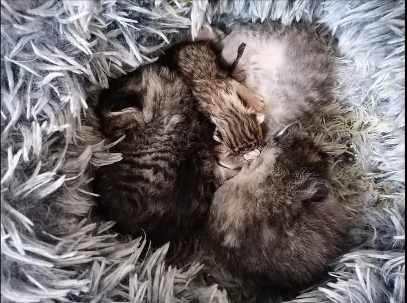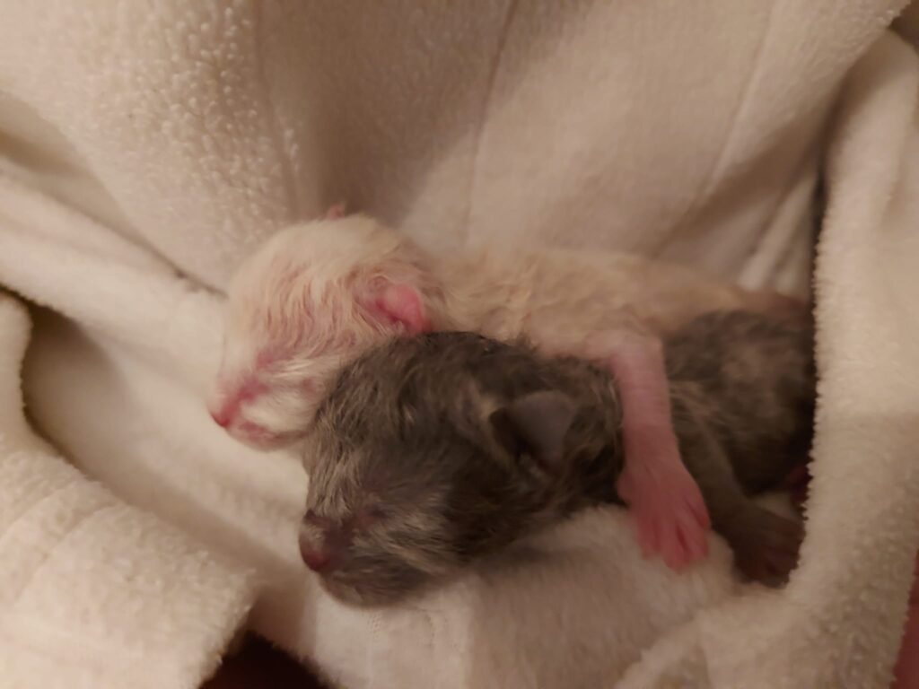Fast verhungerte Katzenwelpen die nach 4 Tagen mit unter 100g gefunden wurden, dabei müssen sie mindesten 8 Tage alt gewesen sein.