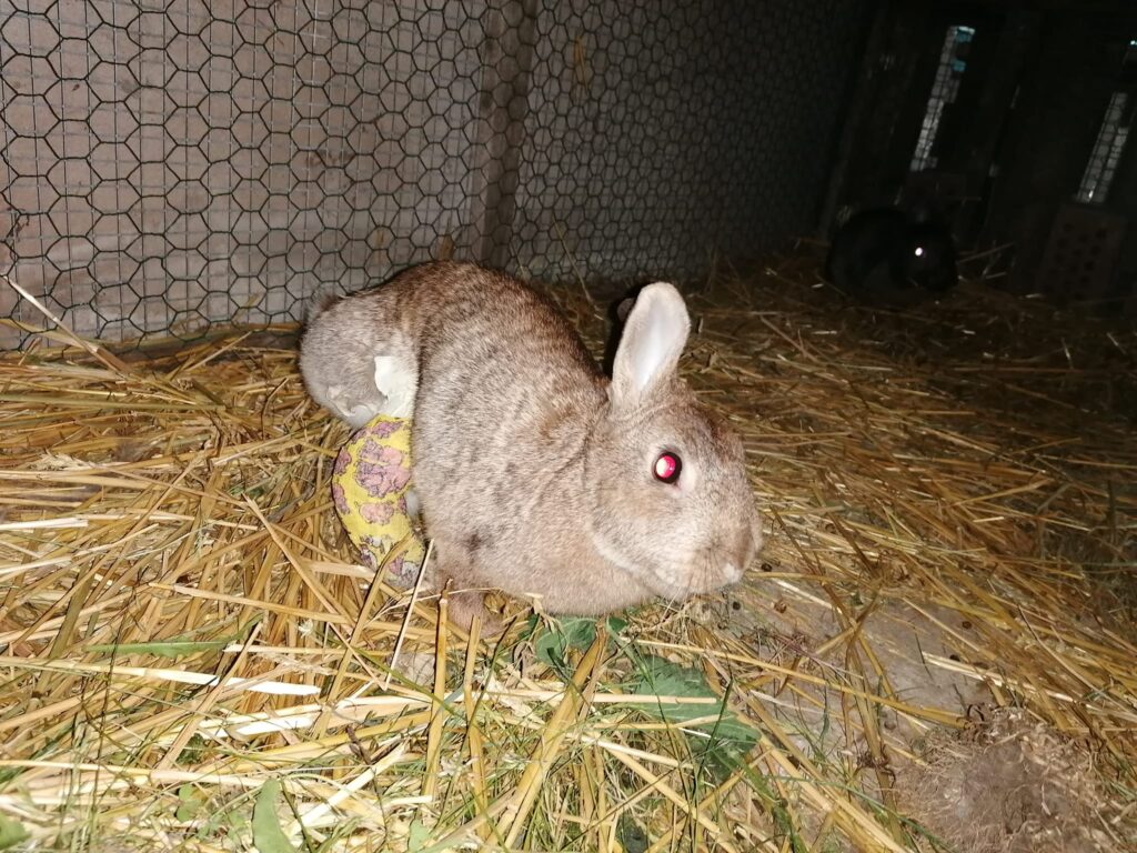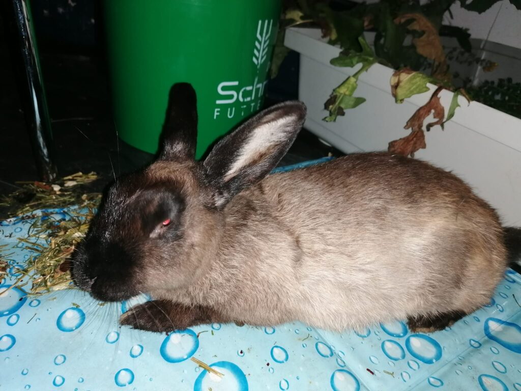 Eine unserer ersten Vermittlungskaninchen, die nach einer missglückten Urlaubsbetreung Tragend wurde, und sich im darauffolgenden Jahr sich das Bein brach. Glücklicherweise heilte es trotz shclechter Prognosse aus.