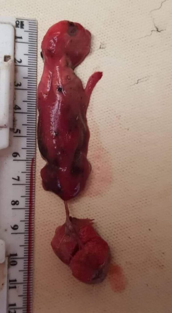 Eine Resorptionsstörung, wo eine Fehlgeburt augelöst wurde udn der Kaninchenwelpe vollstädig erhalten blieb. Häufig werden diese gefressen.
