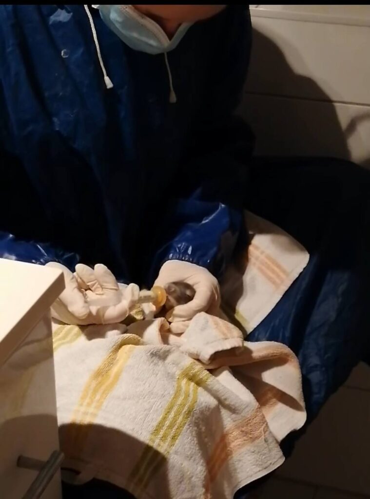 Ein Kätzchen welches mit nur 48g draußen in der scheunegelassen wurde, weil die Finder gesagt bekamen , das Mama es wieder abholt,